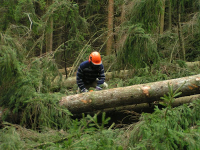 | Já při odvětvování po shození dřeva na stavbu. |