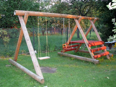 Na stránkách výrobců dětských hřišť, které používám jako zdroj inspirace, se velmi často objevují následující varianty konstrukcí pro houpačky: