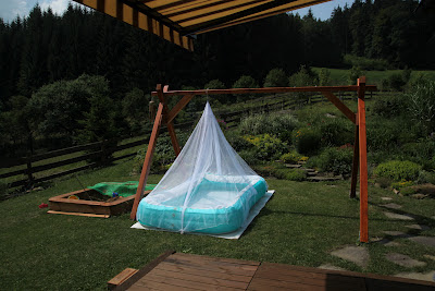 Víte co vznikne, když se spojí šikovný chlap a kreativní žena a do hor dorazí tropy? Pěkné místečko na okoupání našeho malého ogárka. Fotky snad nepotřebují většího komentáře :) Zatím je jen první se sítí proti hmyzu, ale ještě přibude jedna se zastíněním proti přímému sluníčku.