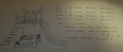 Jak se blížil termín, upřesňovali jsme plány, já získal rozměry plánované skluzavky a mohl začít decentně kreslit návrhy. No upřímně - vzhledem k mému zimnímu absťáku se decentnost trochu zvrhla a během večera jsem měl rozkreslený návrh do posledního šroubku s detailním rozpisem materiálu. Nafotit, poslat druhé straně - za deset minut byla zpět odpověď, že jsem zešílel, že tam nejedu na měsíc. No nic - budeme muset poladit plány asi až na místě.