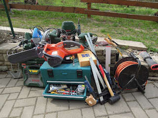Vyskládané nářadí před naložením do auta. Vyjmenovávat to nebudu... |