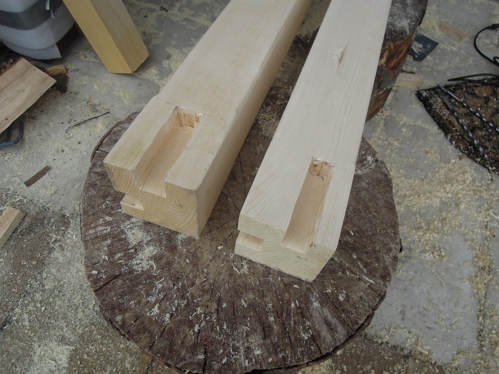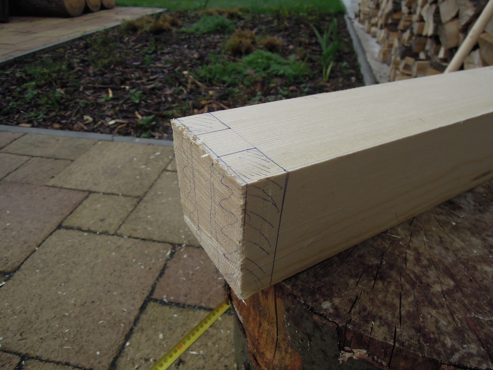Po důkladném rozkreslení přijde na řadu vytvoření čepů a dlabů. Dlaby byly velmi jednoduché díky frézce. Stačí trochu pečlivosti a za minutu je hrubý dlab hotový. Nakonec se ještě dotáhnou rohy dlátkem.
